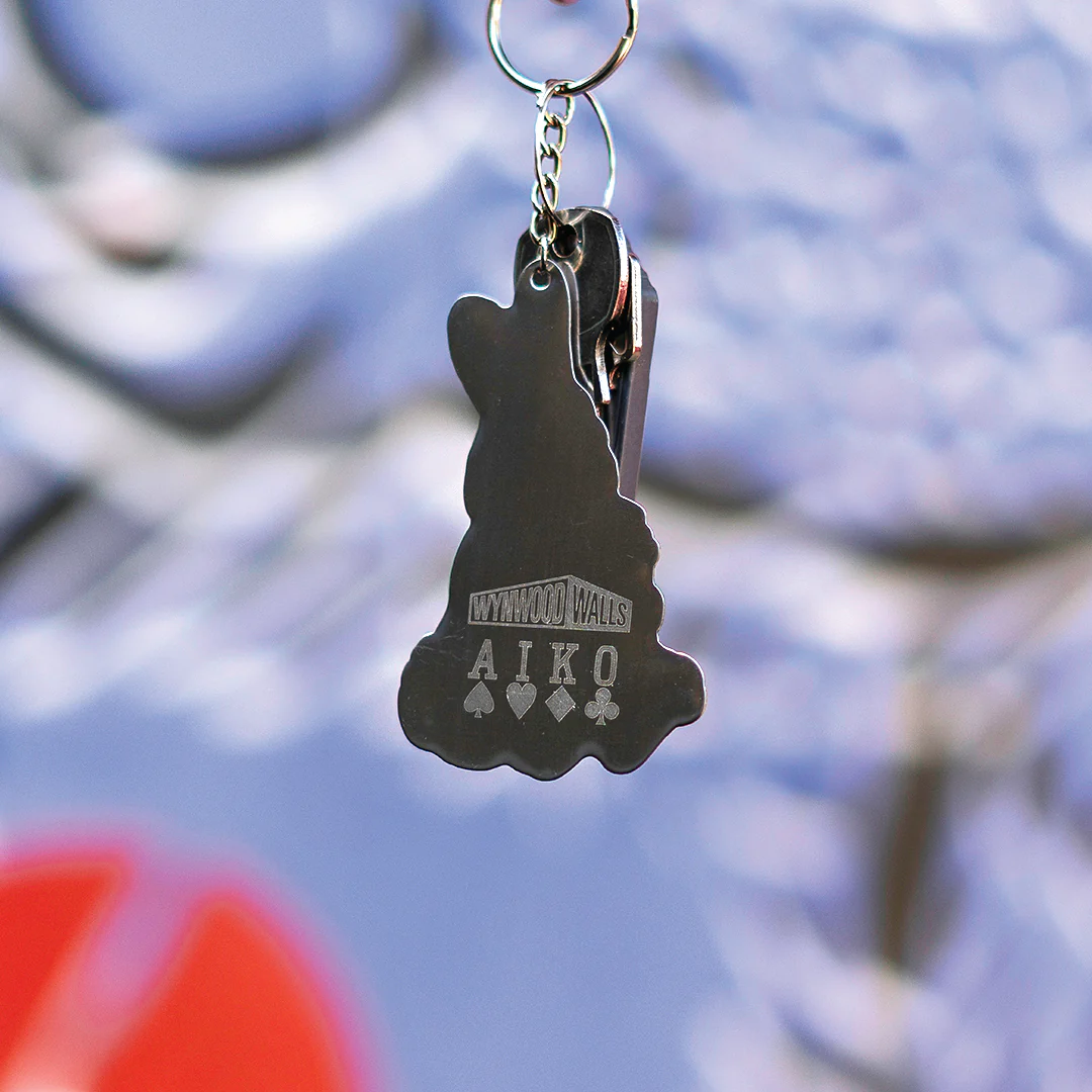 Introducing the Aiko BUNNY Keychain, an artist exclusive accessory from Wynwood Walls. This keychain is a playful representation of Aiko's signature style and creativity, making it a perfect addition to your collection.