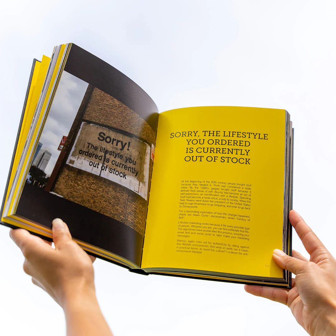 Explore the wit, wisdom and inspiration of an art outlaw. Eat, spray, love. Here we attempt to track, in his own words the development of Banksyisms from the 1990's to the present date. We try to separate the sincere ideas from the art pranks and provocations. Framed by the cultural context in which Banksy was working, his references and his influences. Banksyisms is an in-depth look at his inspirations, observations and opinions complemented by images of his most iconic work. Featuring commentary and insight including a timeline of his career to date.