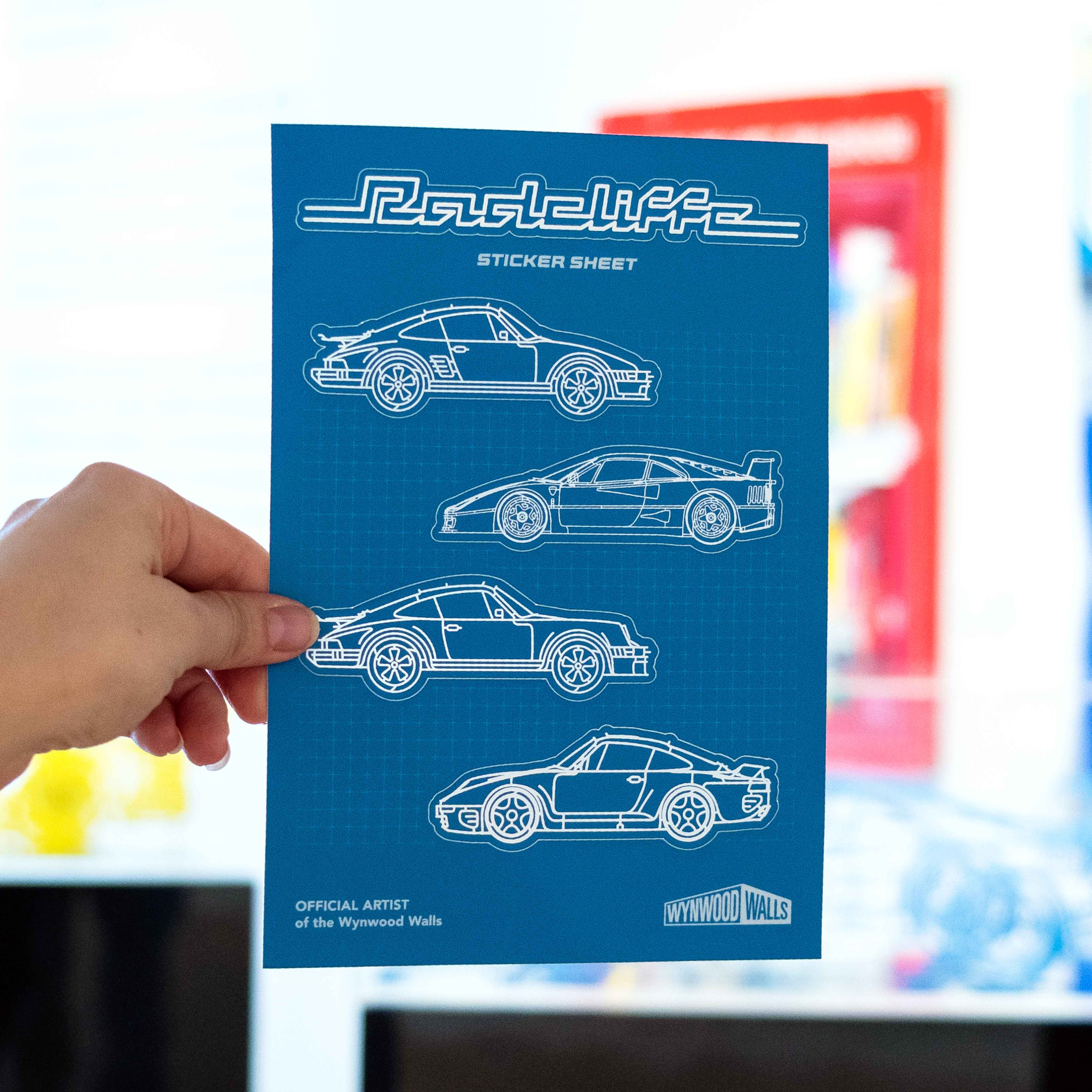 Celebrate bold urban creativity with the Benedict Radcliffe Sticker Sheet, an exclusive release from Wynwood Walls Shop. This A5-sized sheet (5.8” x 8.3”) features five die-cut holographic stickers printed on matte material, blending vibrant edge-to-edge designs with Radcliffe’s iconic style inspired by automotive forms and cityscapes.