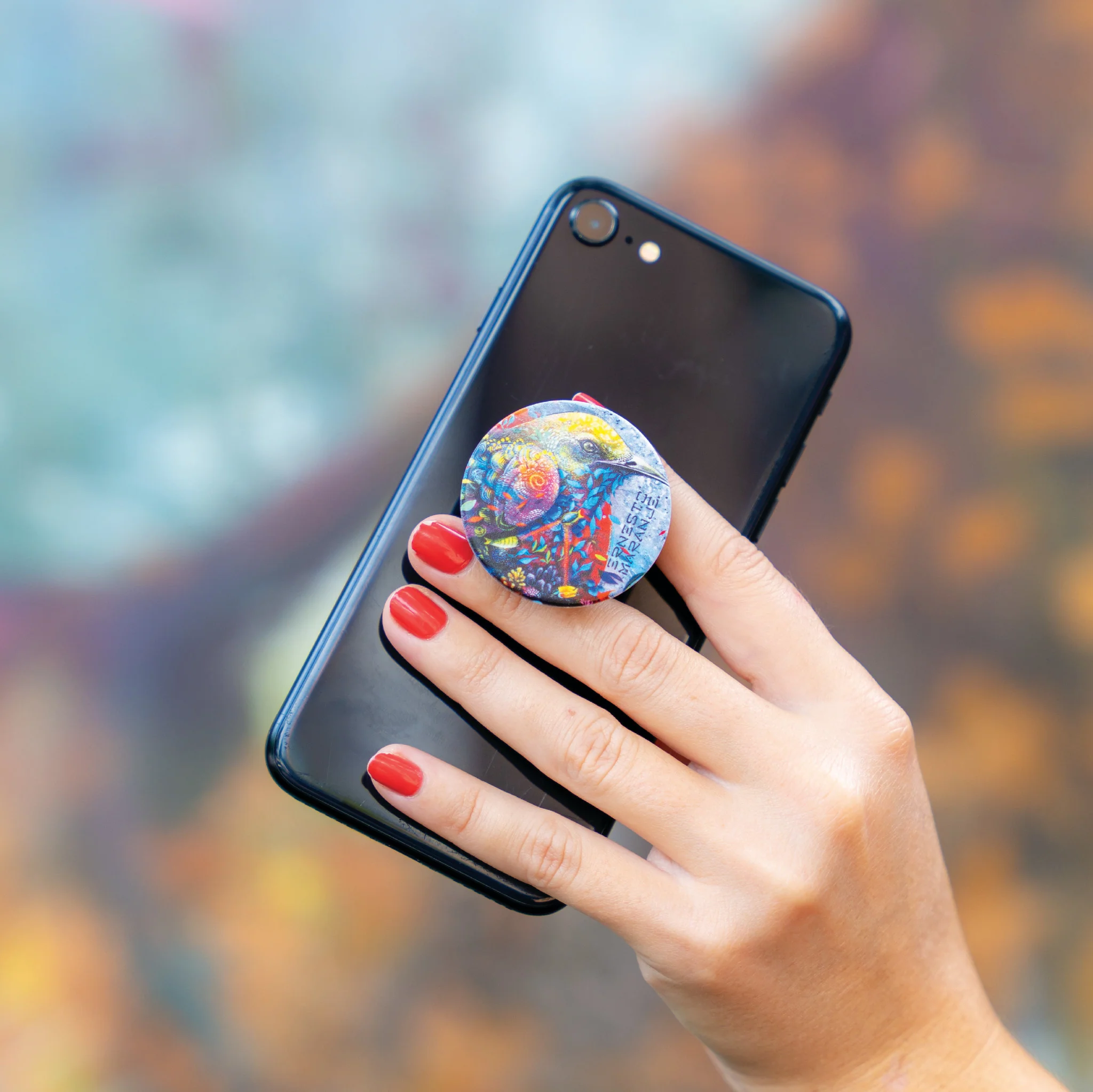 PopSockets are fashionable accessories that help transform your mobile devices. PopSockets offer a secure grip for texting or snapping the perfect selfie, and propping your phone up for catching the latest video. Just "pop" & expand one whenever you need a grip or stand for those brilliant pix, videos, or posts. Dimensions: 39.74 mm diameter x 7 mm H and 24.25 mm H expanded.