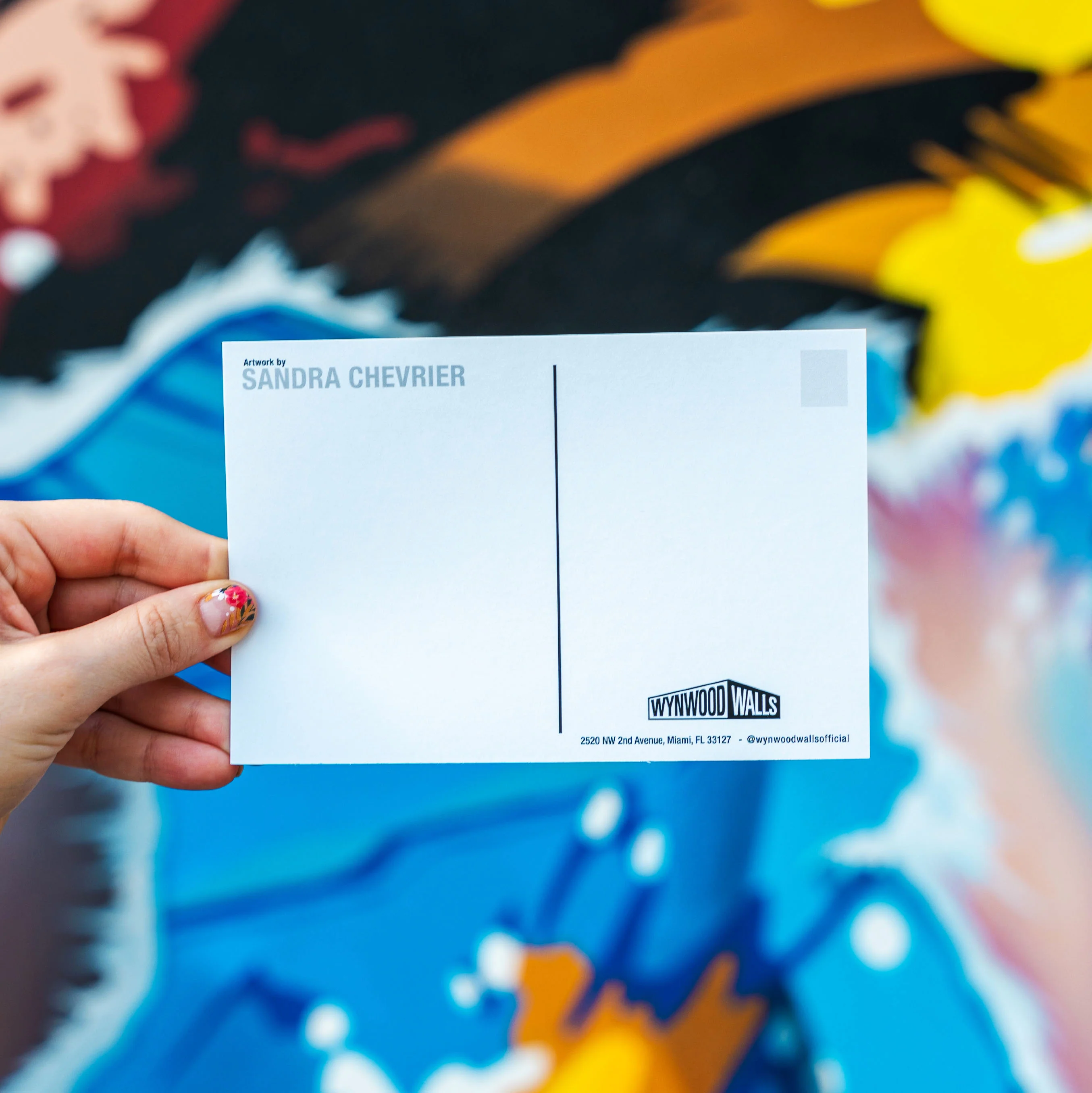 - What makes this postcard a collectorās item? This postcard is part of a limited edition series exclusively featuring artwork by Sandra Chevrier, showcased at the iconic Wynwood Walls.